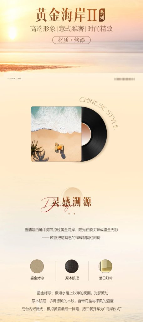 Когда на рассвете средиземноморский ветер обдувает Голд-Кост, солнечный свет разбивается на золотые отблески на гребнях волн — OPPEIN запечатлевает это мимолетное сияние в кухне.